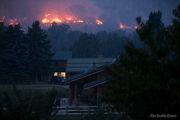 A wildfire burning near Twisp. (Photo credit: Erika Schultz/The Seattle Times)