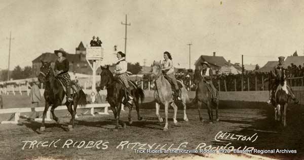 As we blogged earlier, we are celebrating Washington Archives Month in October in our state. This year’s theme is Fairs and Festivals. In keeping with the theme, this photo features trick riders at the Ritzville Rodeo in 1920. Check out the link to the Archives Month website, where you can learn about workshops and other free events related to the State Archives throughout October, plus access to this year’s Archives Month poster. If you want to pick up a free printed copy of the Archives Month poster, stop by our Executive Office in the Legislative Building on the Capitol Campus in Olympia, the State Archives office at 1129 Washington St. SE in Olympia, or one of the regional branches in Bellevue, Bellingham, Cheney or Ellensburg.