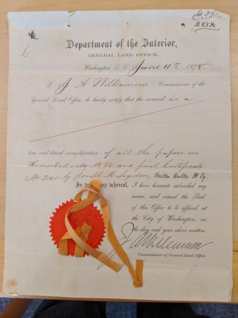 Among the many documents Barnett found was a presidential pardon signed by President Rutherford B. Hayes. The pardon settled what had been a messy land dispute with accusations of fraud in Walla Walla.