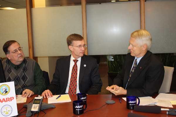 With the holiday season now upon us, many people are thinking about making donations to one or more charities. And of course, many of us have been, or will be, getting solicitations from commercial fundraising organizations to give money to various causes. If you’re thinking about opening your wallet in the name of charity, make sure to give wisely. That was the main message that Secretary Reed and Attorney General Rob McKenna had for everyone as they held a news conference Friday morning at the AARP Washington office in Seattle. They also discussed the brand-new 2010 Commercial Fundraiser Activity Report, released by our Charities Division. The report shows which commercial fundraisers pass along a large percentage of the money raised to the intended charities, and which ones forward a small percentage. You can see either the full report or an overview of it. Following the news conference, Reed and McKenna joined volunteers in a calling blitz in which they offered tips on how to be careful when giving and not be a scam victim. The two state officials then joined AARP State Director Doug Shadel in a telephone Town Hall (shown above) in which they answered listeners‘ questions and offered suggestions on how to give wisely and not get burned. The phone-in event attracted nearly 11,000 callers.